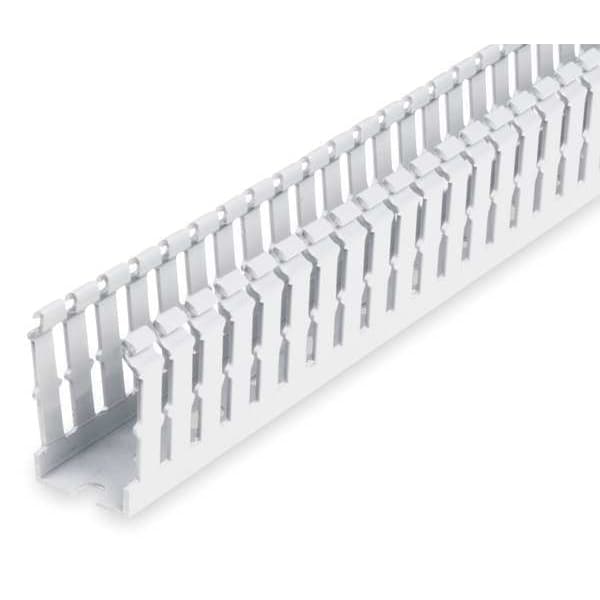 Wiring Duct, Wall Type Narrow Slot, White, Flame Retardant PVC, Length 6 ft., Width 1.25 In., Height 2.19 In., Slot-to-Slot Centerline 0.50 in, Slot Width 0.20 In., Slot Height 1.25 in, Mounting Style Screw Mount, Standards NFPA-79-2002, UL508/UL508A, DIN 43 659