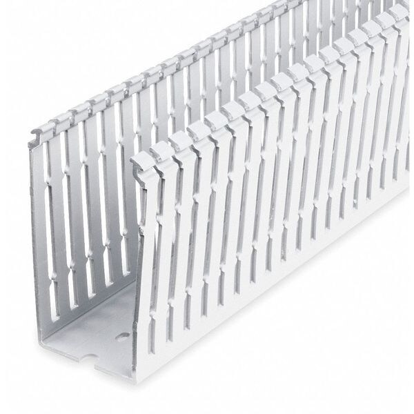 Wiring Duct, Wall Type Narrow Slot, White, Flame Retardant PVC, Length 6 ft., Width 2.25 In., Height 3.14 In., Slot-to-Slot Centerline 0.50 in, Slot Width 0.20 In., Slot Height 2.18 in, Mounting Style Screw Mount, Standards NFPA-79-2002, UL508/UL508A, DIN 43 659