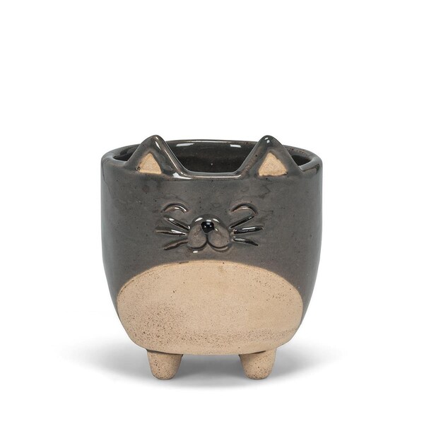 3 in. Cat on Legs Planter, Grey - Small