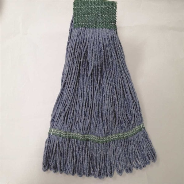 The mop head is blue blend, cotton synthetic material. It is loop end with wide band. Medium in size. Ideal choice for professional cleaning applications.Blue in colorBlend loop end mop headWide band with 5 in. head band16 oz. mop head