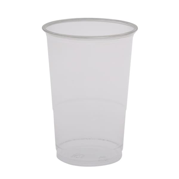 Clear drinking glass with a minimalist design and high quality presents the content in an elegant and appetizing way. Made from RPET plastic with a step.