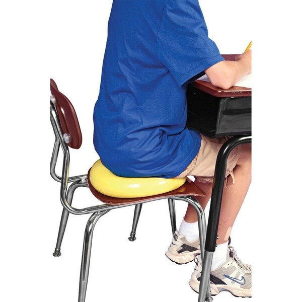 Abilitations inflatable cushion provides varying degrees of stability for developing positioning and balance skills and trunk strength. Air can be added or released from the cushion with a standard athletic pump with sports needle to produce varying levels of stability--deflate for more stability and sensory input from the cushion’s filling; inflate for less stability (pump sold separately). The cushion is versatile for sitting or standing on, and has a vinyl exterior with a filling of small, colored plastic pellets for durability.