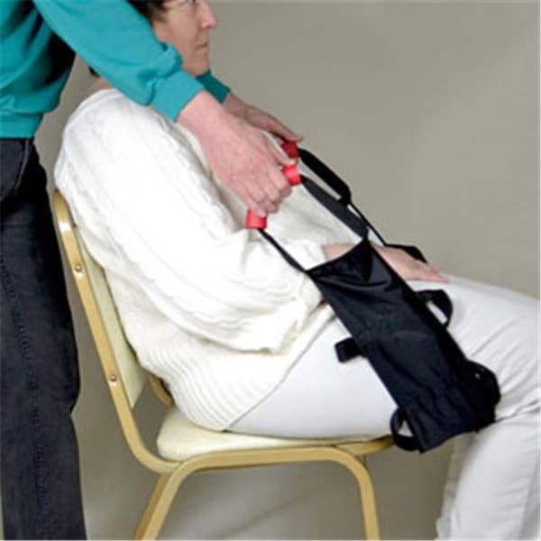Makes the process of sliding a person to the back of a seat easier and safer for both the patient and the caregiver. Provides a caregiver with an alternative to grabbing the person or their clothing when trying to reseat them. Makes The process of sliding a person to the back of a seat easier and safer for both the patient and the caregiver.
