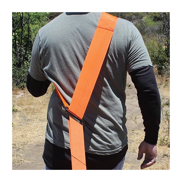Drag Sash goes over one shoulder. This deer dragger is for walking game out or for use with ATVs or UTVs. This super-strong drag strap makes it quick and easy to drag deer. The adjustable drag strap is a total of 7’4” ( 223 cm ) long and 3" ( 7.62 cm ) wide. Drag Sash is adjustable so you can haul your buck in with his antlers up high enough so they don’t get stuck in tree fall. For doe’s, simply wrap this drag strap around your deer’s neck vs the antlers of a buck. Plus, if your deer lays in an area that your ATV or UTV can’t get to immediately, then boot ( a.k.a. "walk" ) your game out to an area where you can drag your deer with your ATV or UTV safely. Then, hook your drag strap with your game to your vehicle so that you can drag the deer with even less manpower.