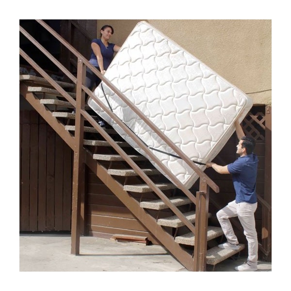 Easy-to-use, adjustable strap designed to easily and effectively lift and carry mattresses of all sizes. It allows you to carry mattresses up and down flights of stairs with ease, also great for plywood, drywall and similar items. Made of tangle-free webbing material looped with 2 cross straps. Just lay on the floor, center the mattress over the and lift.