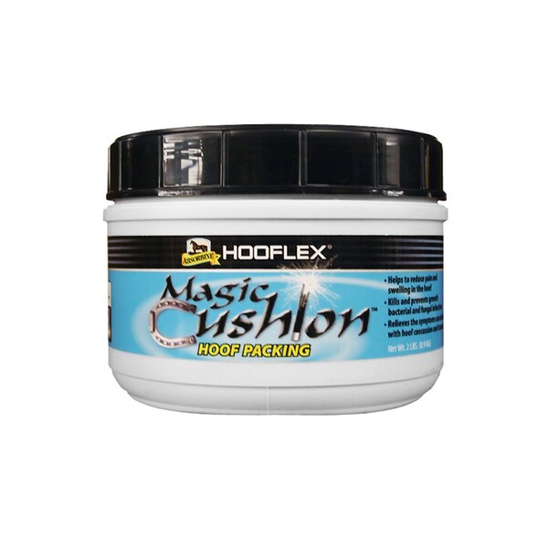A unique medicated hoof packing, this anti-inflammatory and analgesic hoof packing is used for the reduction on concussion, pain and trauma within the hoof capsule of the equine athlete. This scientifically proven hoof packing can be used daily after workouts or under a protective pad to reduce pain and inflammation within the anatomical structures of the hoof. The reduction in pain and inflammation will then promote hoof growth. Magic Cushion is the only anti-inflammatory and analgesic hoof packing on the market and is a treatment type hoof packing and provides a reduction in pain and trauma within the hoof of the equine athlete. Scientifically proven, it is able to provide relief for the following disorders: Laminitis, White Line Disease, Pedal Osteitis, Abscesses, Navicular Syndrome, Bruising, Corns and Canker.