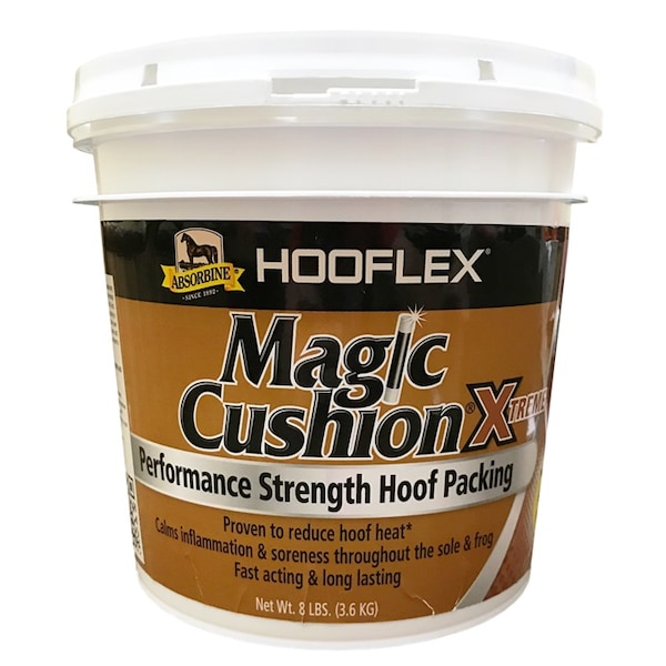 A unique medicated hoof packing, this anti-inflammatory and analgesic hoof packing is used for the reduction on concussion, pain and trauma within the hoof capsule of the equine athlete. This scientifically proven hoof packing can be used daily after workouts or under a protective pad to reduce pain and inflammation within the anatomical structures of the hoof. The reduction in pain and inflammation will then promote hoof growth. 20% more active ingredients than regular Magic Cushion so it works faster. No positive testing. Scientifically proven, it is able to provide relief for the following disorders: Laminitis, White Line Disease, Pedal Osteitis, Abscesses, Navicular Syndrome, Bruising, Corns and Canker.