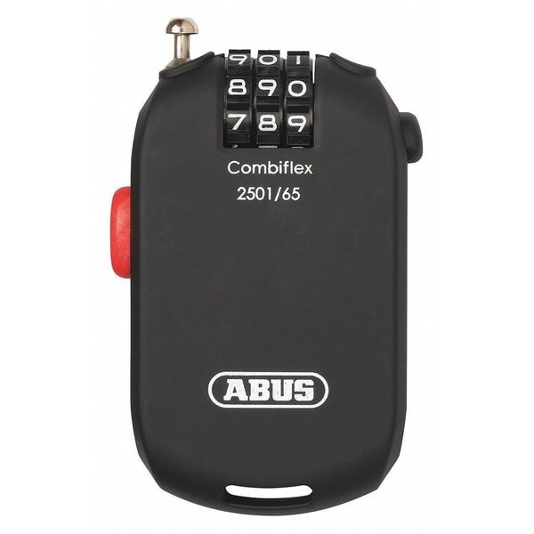 Cable Lock, Locking Style Combination, Retractable Cable Locks, Body Height 13/16 in, Body Width 1 27/32 in, Body Thickness 2 in, Cable Coating Vinyl, 1/16 in Cable Diameter, 2 ft Cable Length, Steel, Combination Type Resettable, Key Code Not Applicable, Keying Not Applicable, Lock Brand ABUS, Weather Resistant No, Body Color Black, Cable Color Silver, Environment Indoor and Outdoor, Lock Body Material Plastic, Lock Body Shape Rectangular, Number of Pins 0, Standards Not Applicable