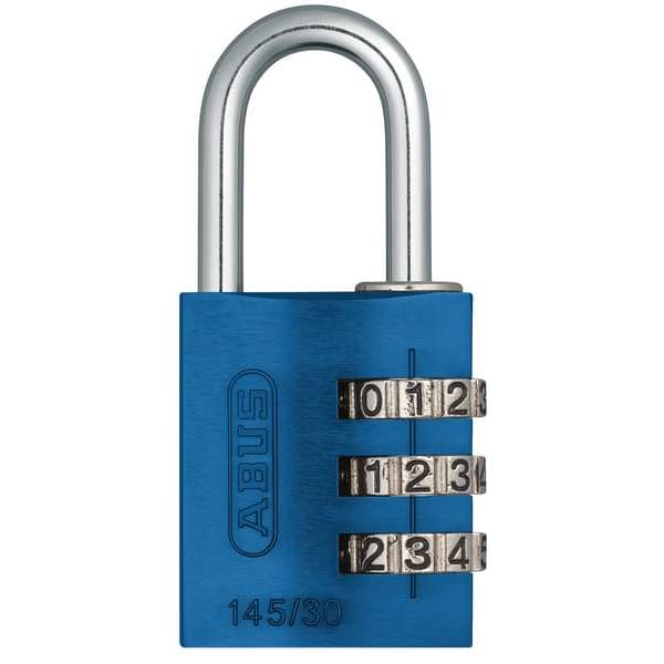 Combination Padlock, Body Finish Anodized, Body Height 1 3/8 in, Body Material Aluminum, Body Thickness 39/64 in, Body Width 1 15/64 in, Body Color Blue, Dial Location Side, For Use With Cabinets, Office Environments and Equipment, School, Employee and Athletic Lockers, Storage Lockers, Key Control No, Key Type Combination, Number of Bumpers 0, Number of Dials 3, Resettable Resettable, Shackle Dia. 3/16 in, Shackle Height 1 in, Shackle Material Steel, Shackle Width 5/8 in, Weather Resistant Yes