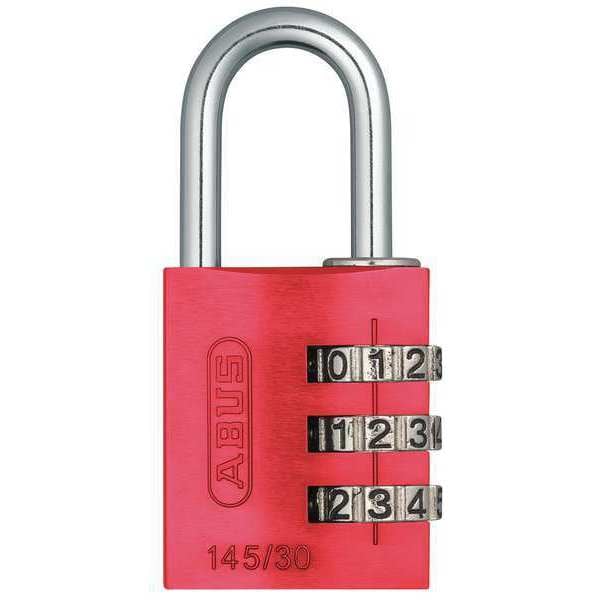 Combination Padlock, Body Finish Anodized, Body Height 1 3/8 in, Body Material Aluminum, Body Thickness 39/64 in, Body Width 1 15/64 in, Body Color Red, Dial Location Side, For Use With Cabinets, Office Environments and Equipment, School, Employee and Athletic Lockers, Storage Lockers, Key Control No, Key Type Combination, Number of Bumpers 0, Number of Dials 3, Resettable Resettable, Shackle Dia. 3/16 in, Shackle Height 1 in, Shackle Material Steel, Shackle Width 5/8 in, Weather Resistant Yes
