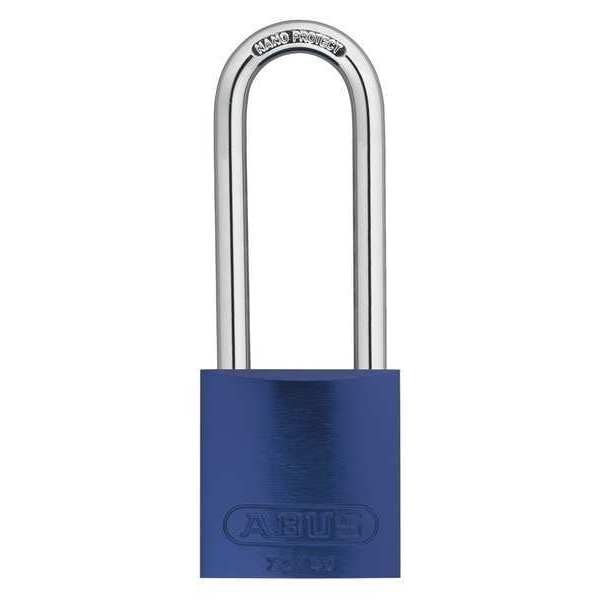Keyed Padlock, Body Color Blue, Body Height 1 5/8 in, Body Material Aluminum, Body Thickness 3/4 in, Body Width 1 1/2 in, Header None/No Header, Key Type Keyed Alike, Shackle Diameter 1/4 in, Shackle Height 3 in, Shackle Material Hardened Steel, Shackle Type Open, Width Across Shackle 13/16 in, Body Shape Rectangular, Control Key Registration Required No, Includes (2) Keys, Package Quantity 3