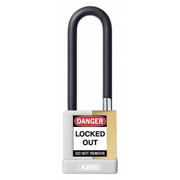Keyed Padlock, Body Color White, Body Height 1 3/4 in, Body Material Brass, Body Thickness 3/4 in, Body Width 2 in, Header None/No Header, Key Type Keyed Different, Non-Removable Key No, Shackle Diameter 1/4 in, Shackle Height 3 in, Shackle Material Hardened Steel, Shackle Type Open, Width Across Shackle 3/4 in, Body Material Coating Powder Coated, Body Shape Rectangular, Control Key Registration Required Yes, Includes (2) Keys