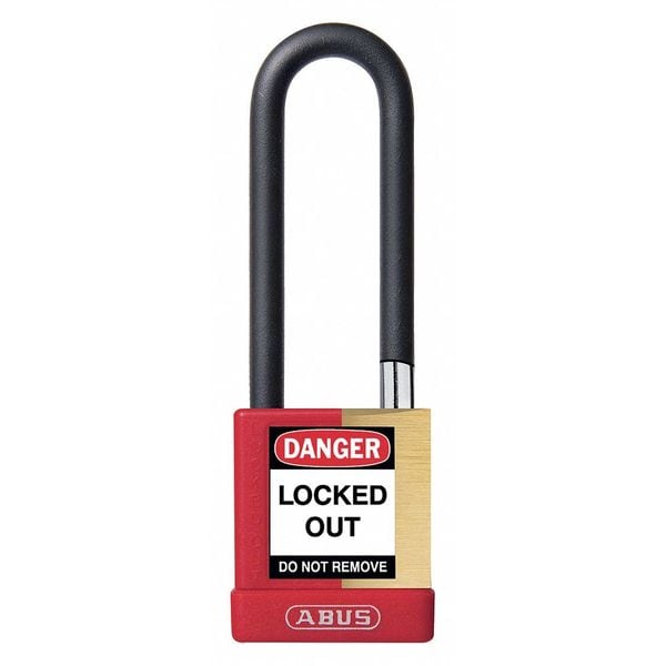 Keyed Padlock, Body Color Red, Body Height 1 3/4 in, Body Material Brass, Body Thickness 3/4 in, Body Width 2 in, Header None/No Header, Key Type Keyed Alike, Non-Removable Key No, Shackle Diameter 1/4 in, Shackle Height 3 in, Shackle Material Hardened Steel, Shackle Type Open, Width Across Shackle 3/4 in, Body Material Coating Powder Coated, Body Shape Rectangular, Control Key Registration Required Yes, Includes (2) Keys