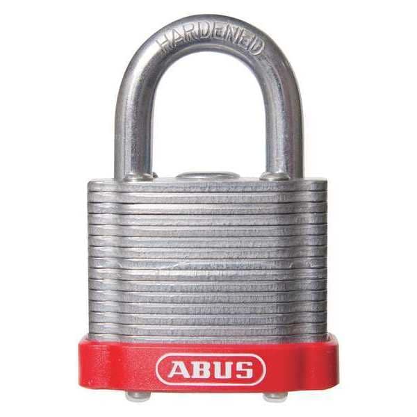 Keyed Padlock, Body Color Red, Body Height 1 5/16 in, Body Material Steel, Body Thickness 1 1/8 in, Body Width 1 1/2 in, Header None/No Header, Key Type Keyed Different, Shackle Diameter 5/16 in, Shackle Height 2 in, Shackle Material Hardened Steel, Shackle Type Open, Width Across Shackle 3/4 in, Body Material Coating Laminated, Body Shape Rectangular, Control Key Registration Required No, Includes Nickel Plated Brass Key, Package Quantity 6