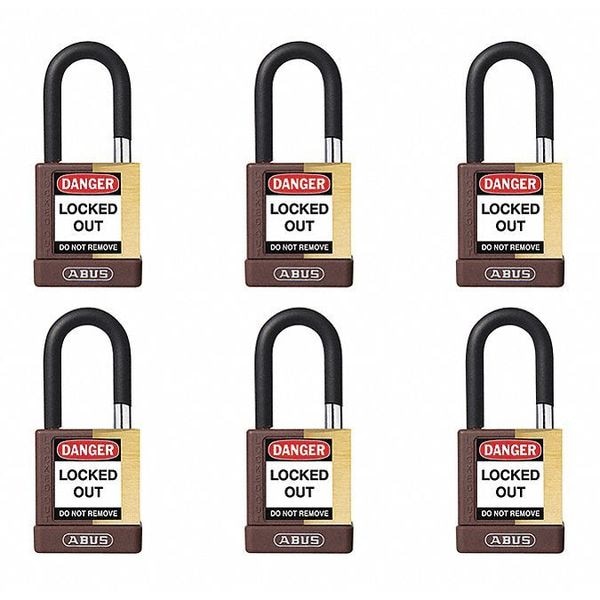 Keyed Padlock, Body Color Brown, Body Height 1 3/4 in, Body Material Brass, Body Thickness 3/4 in, Body Width 2 in, Header None/No Header, Key Type Keyed Alike, Non-Removable Key No, Shackle Diameter 1/4 in, Shackle Height 1 1/2 in, Shackle Material Hardened Steel, Shackle Type Open, Width Across Shackle 3/4 in, Body Material Coating Powder Coated, Body Shape Rectangular, Control Key Registration Required Yes, Includes (2) Keys, Package Quantity 6