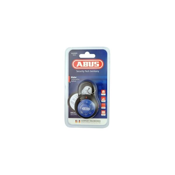 Blue 3-Dial Combination Padlock 2in Wide, Shackle - 1/4in Diameter and 13/16in Vertical Clearance, Carded