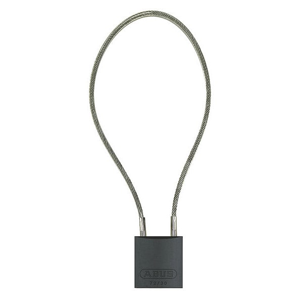 Lockout Padlock, Body Color Black, Body Height 1 9/16 in, Body Material Aluminum, Body Thickness 9/16 in, Body Width 1 3/16 in, Header None/No Header, Key Type Keyed Alike, Non-Removable Key Yes, Shackle Diameter 3/16 in, Shackle Height 8 1/4 in, Shackle Material Steel, Shackle Type Extended, Width Across Shackle 11/16 in, Body Material Coating Anodized, Body Shape Square, Control Key Registration Required No, Features Flexible Cable