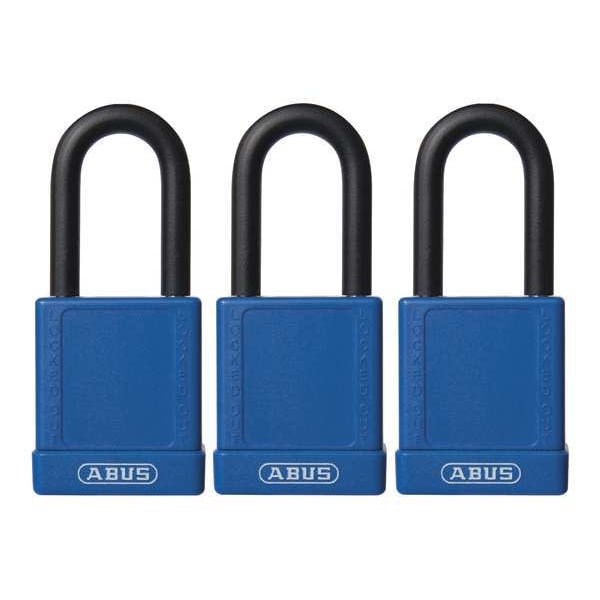 Lockout Padlock, Keyed Alike, Plastic-Covered Aluminum, Blue, 1 1/2 in Shackle Height, 3 PK