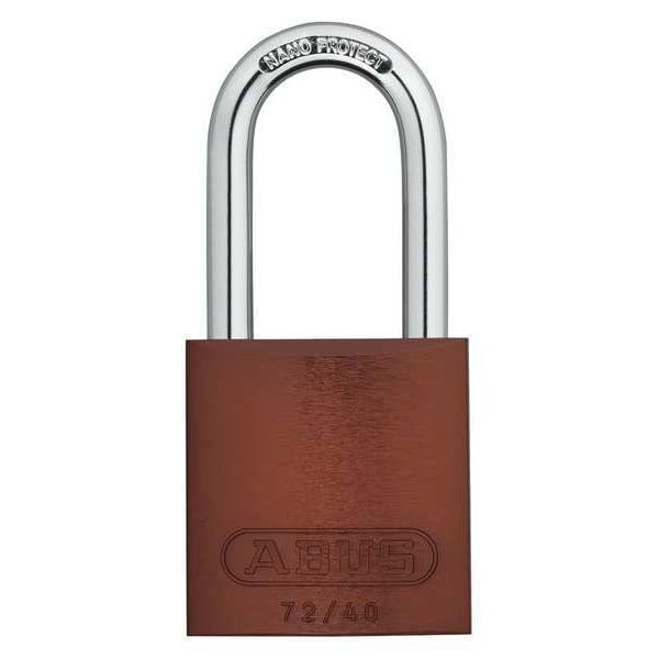 Lockout Padlock, Body Color Brown, Body Height 1 1/2 in, Body Material Aluminum, Body Thickness 11/16 in, Body Width 1 1/2 in, Header None/No Header, Horizontal Shackle Clearance 3/4 in, Key Type Keyed Different, Non-Removable Key Yes, Resistance Properties Corrosion Resistant, Heat Resistant, Shackle Diameter 1/4 in, Shackle Height 1 1/2 in, Shackle Material Hardened Steel, Shackle Type Open, Vertical Shackle Clearance 1 1/2 in, Width Across Shackle 13/16 in, Body Material Coating Anodized