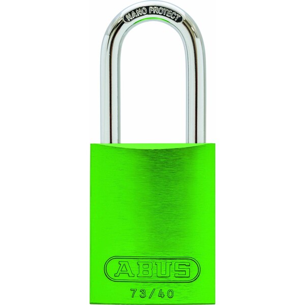 Lockout Padlock, Body Color Green, Body Height 1 15/16 in, Body Thickness 3/4 in, Body Width 1 1/2 in, Header None/No Header, Horizontal Shackle Clearance 3/4 in, Key Style Standard, Key Type Keyed Different, Non-Removable Key Yes, Resistance Properties Corrosion Resistant, Oil Resistant, Shackle Diameter 1/4 in, Shackle Height 1 3/4 in, Shackle Material Hardened Steel, Shackle Type Open, Vertical Shackle Clearance 1 9/16 in, Width Across Shackle 1 5/16 in, Body Material Coating Anodized