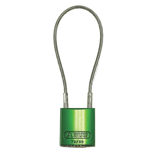 Lockout Padlock, Body Color Green, Body Height 1 9/16 in, Body Material Aluminum, Body Thickness 9/16 in, Body Width 1 3/16 in, Header None/No Header, Key Type Keyed Different, Non-Removable Key Yes, Shackle Diameter 3/16 in, Shackle Height 4 in, Shackle Material Steel, Shackle Type Extended, Width Across Shackle 11/16 in, Body Material Coating Anodized, Body Shape Square, Control Key Registration Required No, Features Flexible Cable