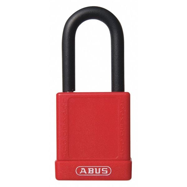 Lockout Padlock, Body Color Red, Body Height 1 3/4 in, Body Material Aluminum, Body Thickness 3/4 in, Body Width 1 1/2 in, Header None/No Header, Key Type Keyed Different, Non-Removable Key Yes, Shackle Diameter 1/4 in, Shackle Height 1 1/2 in, Shackle Material Hardened Steel, Shackle Type Open, Width Across Shackle 3/4 in, Body Material Coating Vinyl Covered, Legend Danger Locked Out, Package Quantity 6