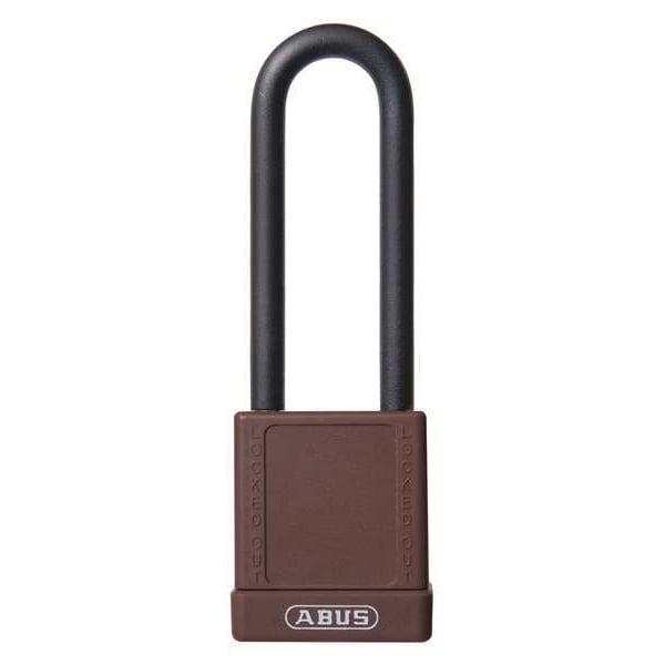Lockout Padlock, Body Color Brown, Body Height 1 3/4 in, Body Material Plastic-Covered Aluminum, Body Thickness 13/16 in, Body Width 1 9/16 in, Header None/No Header, Horizontal Shackle Clearance 3/4 in, Key Type Keyed Different, Non-Removable Key Yes, Resistance Properties Corrosion Resistant, Tamper Resistant, Shackle Diameter 5/16 in, Shackle Height 3 in, Shackle Material Steel, Shackle Type Open, Vertical Shackle Clearance 2 15/16 in, Width Across Shackle 3/4 in, Bumper Color Brown