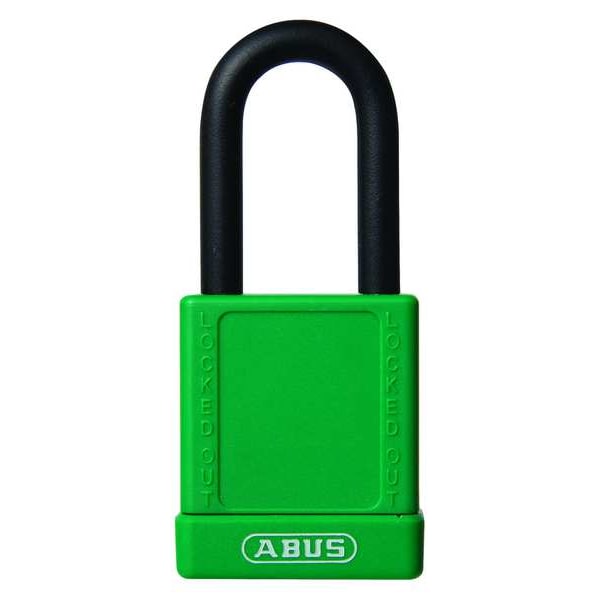 Lockout Padlock, Body Color Green, Body Height 1 3/4 in, Body Material Plastic-Covered Aluminum, Body Thickness 13/16 in, Body Width 1 9/16 in, Header None/No Header, Horizontal Shackle Clearance 3/4 in, Key Type Keyed Different, Non-Removable Key Yes, Resistance Properties Corrosion Resistant, Tamper Resistant, Shackle Diameter 5/16 in, Shackle Height 1 1/2 in, Shackle Material Steel, Shackle Type Open, Vertical Shackle Clearance 1 1/2 in, Width Across Shackle 3/4 in, Bumper Color Green