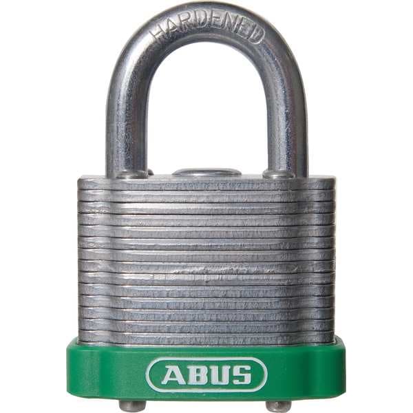 Lockout Padlock, Body Color Green, Body Height 1 3/8 in, Body Material Steel, Body Thickness 1 in, Body Width 1 1/2 in, Header None/No Header, Horizontal Shackle Clearance 13/16 in, Key Type Keyed Different, Resistance Properties Corrosion Resistant, Rust Resistant, Shackle Diameter 1/4 in, Shackle Height 3/4 in, Shackle Material Hardened Steel, Shackle Type Open, Vertical Shackle Clearance 3/4 in, Width Across Shackle 13/16 in, Body Material Coating Laminated, Body Shape Rectangular