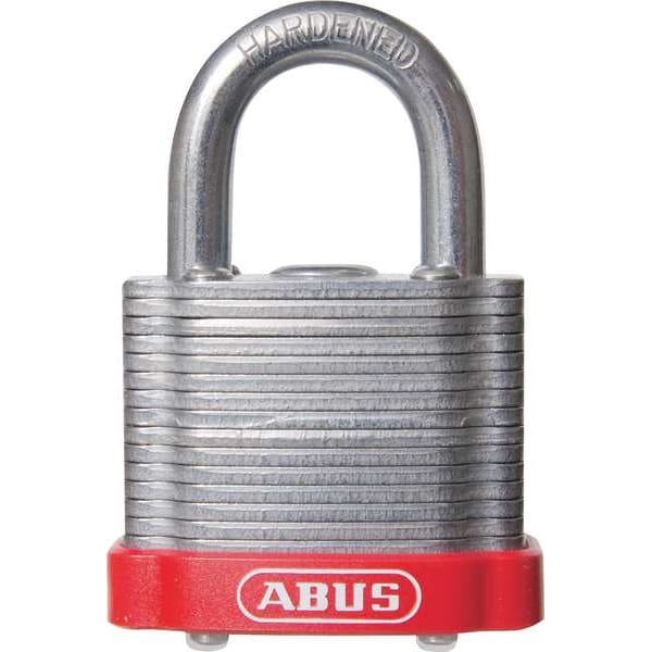 Lockout Padlock, Body Color Red, Body Height 1 3/8 in, Body Material Steel, Body Thickness 1 in, Body Width 1 1/2 in, Header None/No Header, Horizontal Shackle Clearance 13/16 in, Key Type Keyed Different, Resistance Properties Corrosion Resistant, Rust Resistant, Shackle Diameter 1/4 in, Shackle Height 3/4 in, Shackle Material Hardened Steel, Shackle Type Open, Vertical Shackle Clearance 3/4 in, Width Across Shackle 13/16 in, Body Material Coating Laminated, Body Shape Rectangular