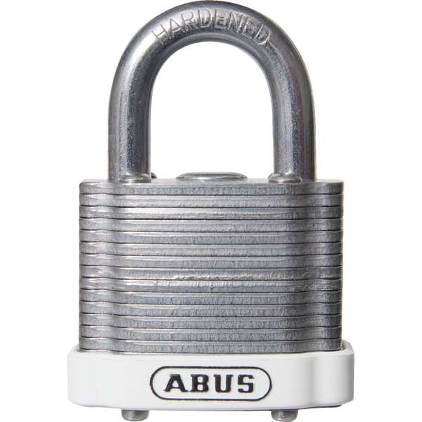 Lockout Padlock, Body Color White, Body Height 1 3/8 in, Body Material Steel, Body Thickness 1 in, Body Width 1 1/2 in, Header None/No Header, Horizontal Shackle Clearance 13/16 in, Key Type Keyed Different, Resistance Properties Corrosion Resistant, Rust Resistant, Shackle Diameter 1/4 in, Shackle Height 3/4 in, Shackle Material Hardened Steel, Shackle Type Open, Vertical Shackle Clearance 3/4 in, Width Across Shackle 13/16 in, Body Material Coating Laminated, Body Shape Rectangular