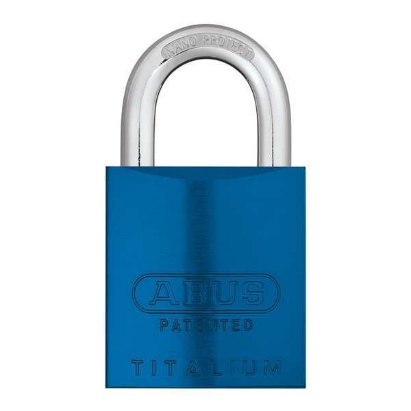 Padlock, Shackle Dia. 1/4 in, Shackle Height 1 1/2 in, Shackle Width 1 in, Shackle Material Steel, Body Height 2 1/16 in, Body Width 1 37/64 in, Body Thickness 3/4 in, Body Material Aluminum, Number of Bumpers 0, Number of Pins 6 Pin, Key Type Coreless, Body Color Blue, Keyway Type Interchangeable Core, Weather Resistant Yes, High Security Yes, Interchangeable Core Yes, Non Removable Key Yes, Padlock Body Shape Rectangular, Rekeyable Yes, Shackle Type Long Shackle