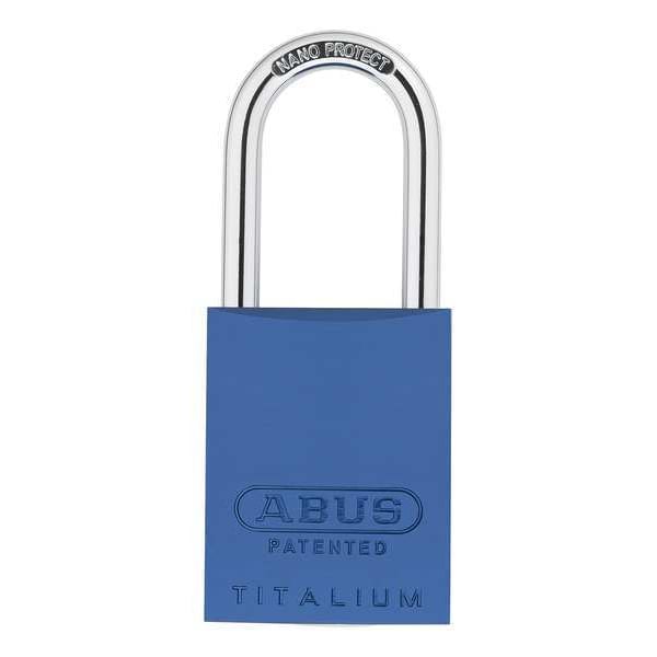 Padlock, Shackle Dia. 1/4 in, Shackle Height 1 1/2 in, Shackle Width 1 in, Shackle Material Steel, Body Height 2 1/16 in, Body Width 1 37/64 in, Body Thickness 3/4 in, Body Material Aluminum, Number of Bumpers 0, Number of Pins 5 Pin, 6 Pin, Key Type Alike, Control Key Registration Required No, Body Color Blue, Keyway Type Schlage C, Weather Resistant Yes, High Security Yes, Interchangeable Core Yes, Non Removable Key Yes, Padlock Body Shape Rectangular, Rekeyable Yes, Shackle Type Long Shackle
