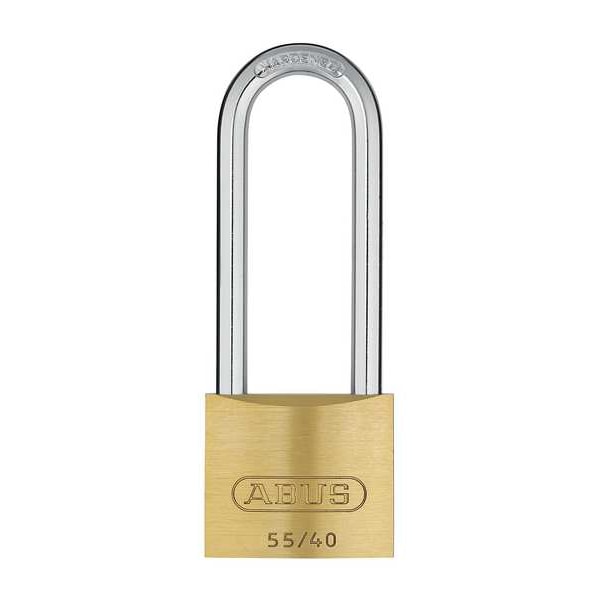 Padlock, Shackle Dia. 1/4 in, Shackle Height 2 1/2 in, Shackle Width 13/16 in, Shackle Material Steel, Body Height 1 21/64 in, Body Width 1 1/2 in, Body Thickness 33/64 in, Body Material Brass, Number of Bumpers 0, Number of Pins 4 Pin, Key Type Alike, Control Key Registration Required No, Body Color Brass, Keyway Type Abus, Weather Resistant Yes, High Security No, Interchangeable Core No, Padlock Body Shape Rectangular, Rekeyable No, Shackle Type Long Shackle