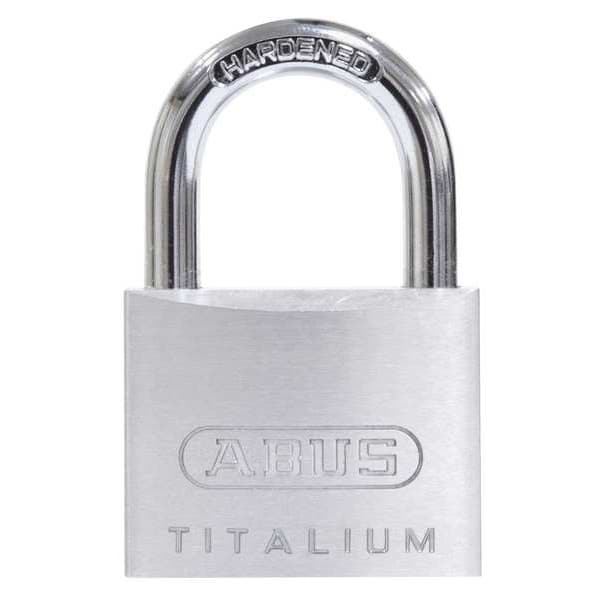 Padlock, Shackle Dia. 1/4 in, Shackle Height 7/8 in, Shackle Width 7/8 in, Shackle Material Steel, Body Height 1 19/64 in, Body Width 1 37/64 in, Body Thickness 19/32 in, Body Material Aluminum, Number of Bumpers 0, Number of Pins 5 Pin, Key Type Different, Control Key Registration Required No, Body Color Silver, Body Finish Chrome Plated, Keyway Type Abus, Weather Resistant Yes, High Security No, Interchangeable Core No, Padlock Body Shape Square, Rekeyable No, Shackle Type Standard Shackle