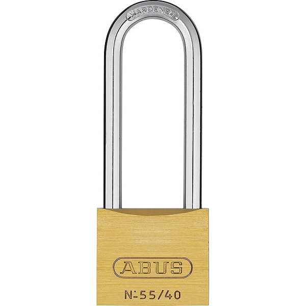 Padlock, Shackle Material Steel, Body Height 2 3/8 in, Body Width 1 1/2 in, Body Thickness 1/2 in, Number of Bumpers 0, Number of Pins 4 Pin, Keyway Type ABUS, Weather Resistant No, Interchangeable Core No, Rekeyable No, Shackle Type Long Shackle
