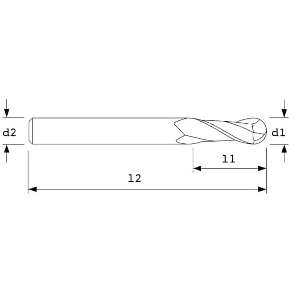 End Mill,Std Ball,30Hlx3Fl,1/4"diaUnctd