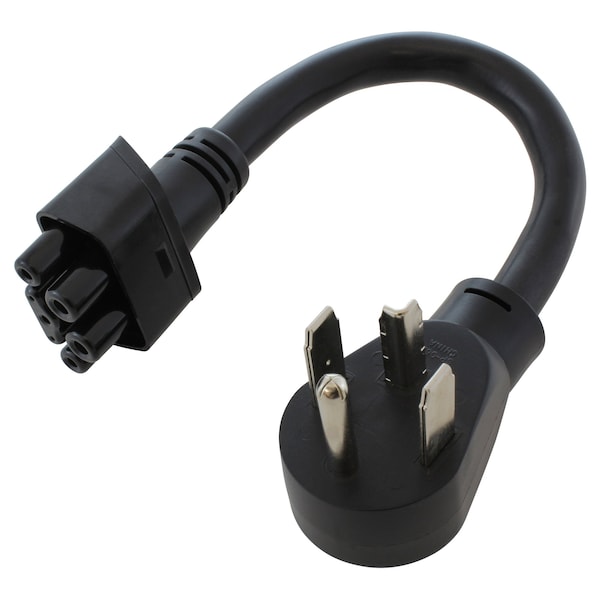 This NEMA 14-30 adapter comes installed with a chip that pre-sets your charging limit to 24 Amps. It can be used with your Generation II Tesla Mobile Connector to charge your car with a 4-prong dryer outlet.