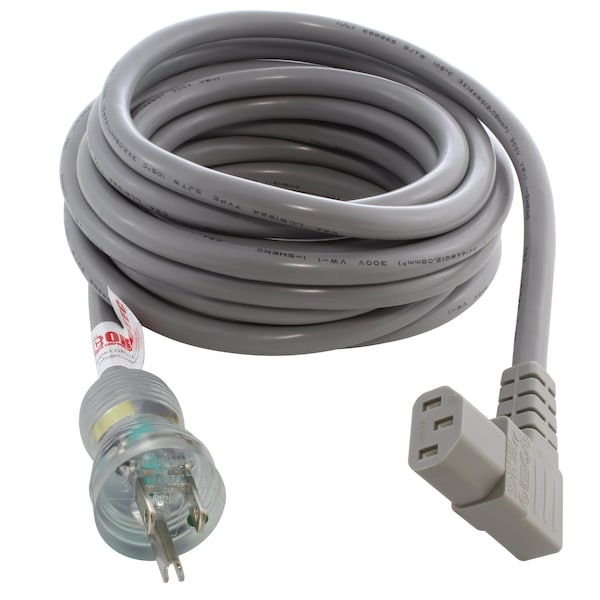 6ft 18/3 10A Medical Grade Power Cord with Right Angle IEC C13 Connector