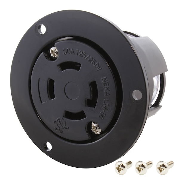 L14-30R, 30 A, 125/250V AC, 3 Pole, 4 Wire, Surface Mount, Grounded