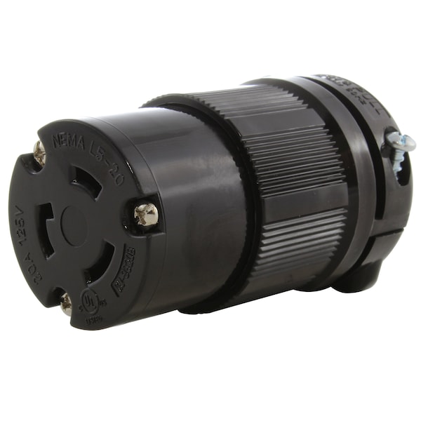 Locking Connector, L5-20R, 20 A, 125V AC, Single Phase, Black