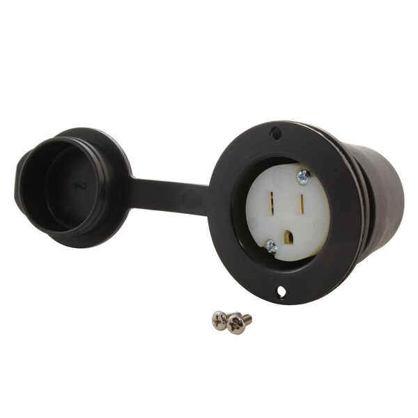 Outlet, NEMA 5-15R Flange Mount, 15A 125V with Front/Back Covers
