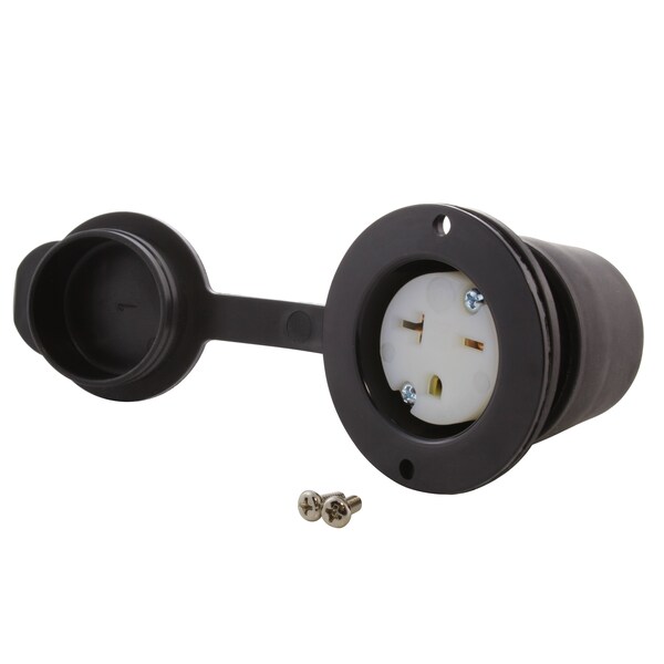 This AC WORKS brand NEMA 6-20R wiring device is a heavy-duty power outlet with covers. It is used for an industrial and commercial grade flange outlet. This outlet works with 10 or 12 AWG American Wire Gauge copper wire and is commonly used for residential, commercial, and industrial power.