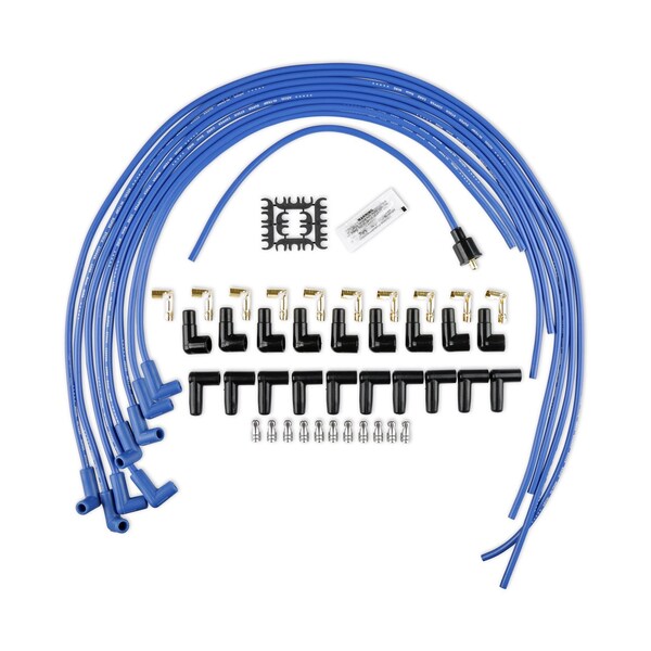 Unassembled, Blue, 8 Millimeter Diameter, Silicone, Copper Spiral Core, 90 Degree Spark Plug Boots