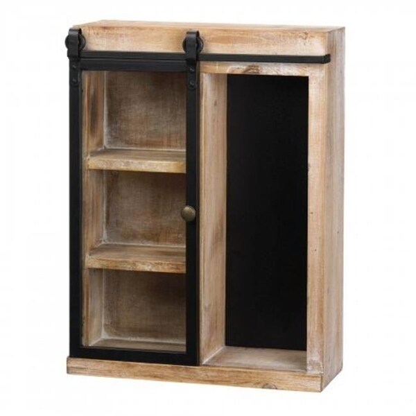 For extra storage place this unique wall shelf in a bathroom, closet, mud room, or anywhere else you require. The rustic appearance and design of the cabinet will seamlessly fit with farmhouse and the sliding glass barn door attached to this cabinet is a unique feature that guests will enjoy playing with. Use for toiletries, make-up, linens, as a medicine cabinet, or display figurines or small trinkets on the shelf. Made of MDF wood the wall cabinet is designed for easily assembly and mounting to the wall.
