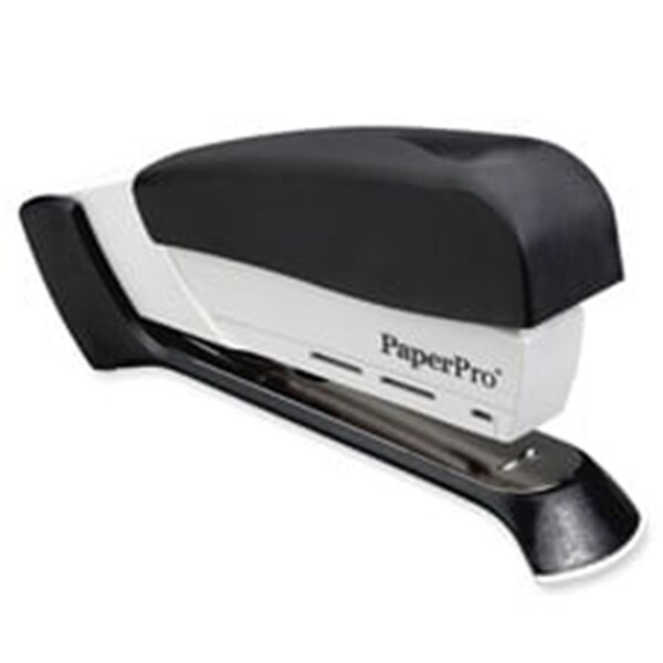 Patented Spring-Powered Stapler allows you to drive a staple through 15 sheets of paper with the press of one finger. Lightweight and powerful with an ergonomic shape that sits either horizontally or vertically to save space. Nonslip handle, easy drop-in loading, and staples remaining window. Uses standard staples. Includes one rack.