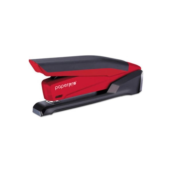 Paperpro spring-powered desktop stapler, 20 sheet capacity, red staple driving technology makes stapling up to 20 sheets 80 percent easier than with other staplers. Contoured rubber handle adds comfort. Tapered, rounded base. Easy drop-in loading. Staples-remaining window. Stands both horizontally and vertically. Usable as a tacker. Uses standard 1/4" staples. this product arrives to most customers in 2-3 business days.