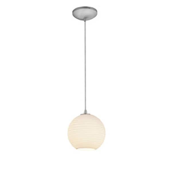 Japanese Lantern, Pendant, Brushed Steel Finish, White Lined Glass