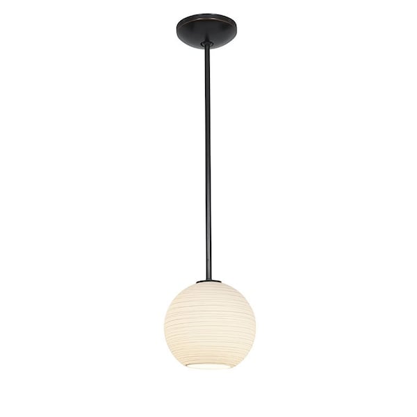 Japanese Lantern, s 1Light Pendant, Oil Rubbed Bronze Finish, White Lined Glass
