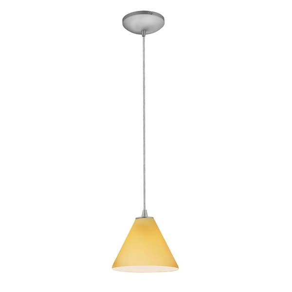 Martini, Pendant, Brushed Steel Finish, Amber Glass